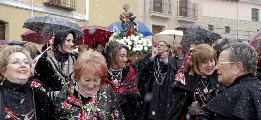 Las ganas pudieron al mal tiempo y finalmente la procesión en honor a Santa Águeda se celebró en Cuéllar a pesar de que la nieve cayó con intensidad durante el recorrido. Eso sí, fue un recorrido rápido y corto; mucho más corto de lo habitual para evitar daños tanto personales como en la imagen que se custodia en la iglesia de El Salvador. Las mujeres que acudieron a la procesión tuvieron que conformarse con procesionar a Santa Águeda solo alrededor del atrio del templo y con un ritmo más acelerado de lo habitual, solo superado por el ritmo con el que caía la nieve.