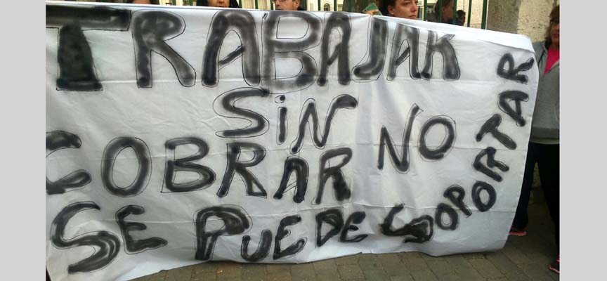 Las limpiadoras han realizado hoy la primera de esas concentraciones en la que portaban una parcarta que decía: “Trabajar sin cobrar no se puede soportar”.