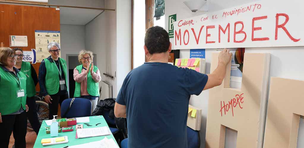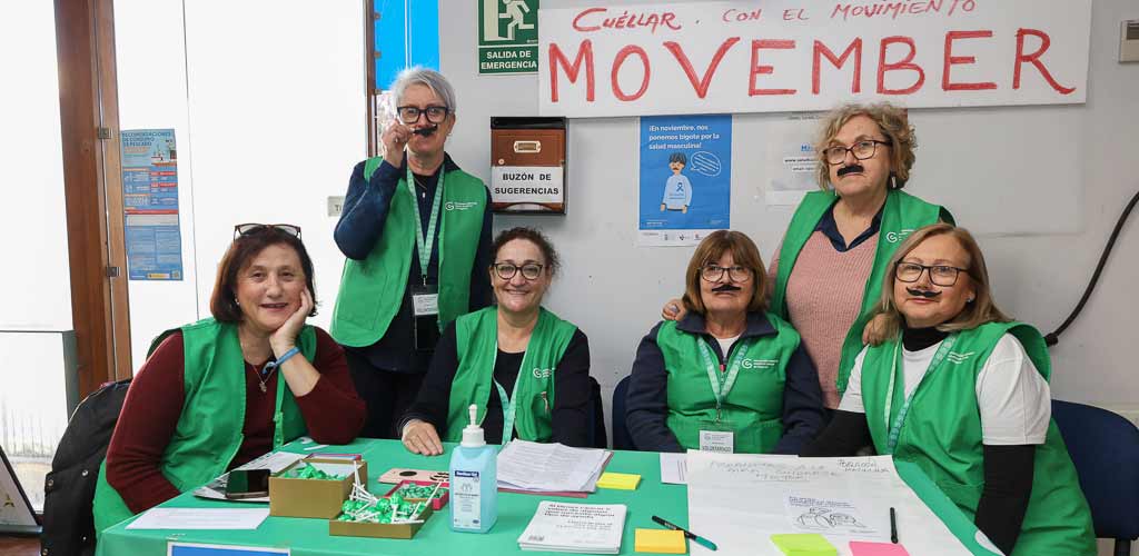 Las voluntarias de la AECC de Cuéllar se sumaron al movimiento Movember en pro de la salud masculina instalando una mesa informativa en el centro de salud de Cuéllar. Una actividad de la AECC y la Gerencia de Asistencia Sanitaria de Segovia. Así, desde la asociación se han enviado a los centros de salud de la provincia bigotes y lazos para que los profesionales de la salud los lleven en sus consultas “visibilizando su compromiso” frente al cáncer de próstata y difundiendo entre los hombres la importancia de cuidarse.