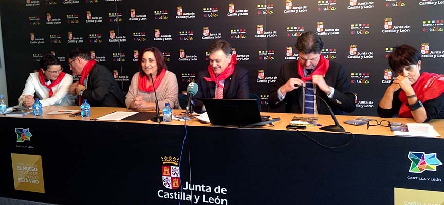 Con pañuelos rojos al cuello han seguido los representantes provinciales la presentación de la responsable de Turismo cuellarana.