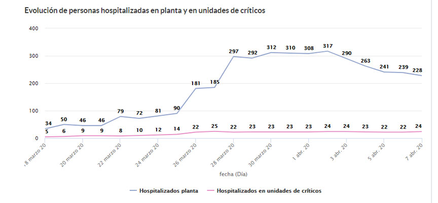 En Segovia hay 1.349 casos confirmados y hoy se ha sumado 97 nuevos positivos. Hasta el momento se han producido 387 altas hospitalarias y los fallecidos son ya 115. En el Complejo Hospitalario de Segovia hay 228 enfermos hospitalizados en planta y 24 en la UCI. Mientras las cifras de ingresados en la UCI se mantienen la de hospitalizados en planta continúa descendiendo desde el pasado dos de abril cuando se alcanzó el pico de 317 enfermos ingresados.