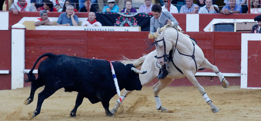 Paulo Jorge Santos con el tercero, el toro mejor presentado de la tarde y que se rajó en el segundo tercio estuvo temerario con los caballos recibiendo varios impactos del toro en algunos de los encuentros en banderillas. Un rejón bajo y doce descabellos condujeron al astado al desolladero. Con el sexto de la tarde volvió a demostrar que todavía le falta oficio para estar a la altura de este tipo de festejos. Clavó a la grupa y siempre en terrenos alejados del toro. Tras un rejón que fue empujado por uno de los peones (inaudito en esta plaza) cayó un toro y recibió el silencio del público.