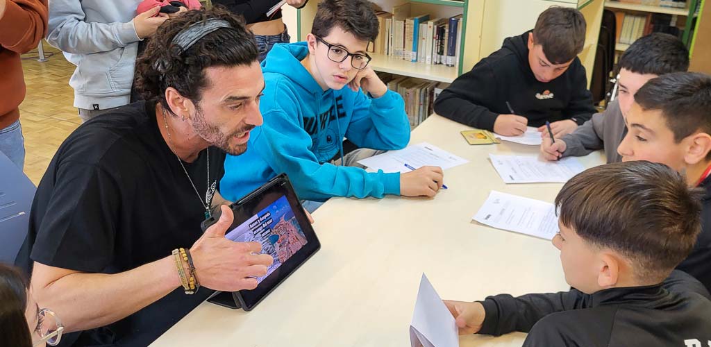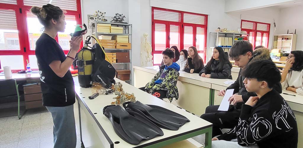 En su visita al IES Marqués de Lozoya Palacios explicó que se trataba de “unas jornadas de sensibilización en unos programas de educación ambiental que desarrollamos dentro del proyecto Deep Core Project, de recuperación de arrecifes pionero a nivel mundial”.