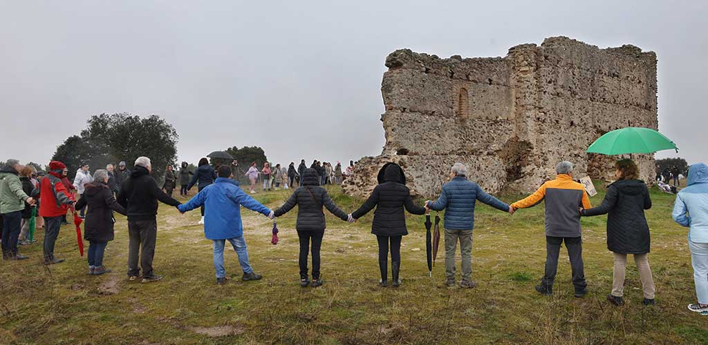 La lluvia que cayó a lo largo de toda la jornada no impidió que vecinos principalmente de Zarzuela, Navalmanzano y Fuentepelayo se dieran cita junto a los restos del monumento cuya imagen desean preservar frente al ataque que consideran que la torreta supondría para ese elemento patrimonial tan apreciado por toda la zona.