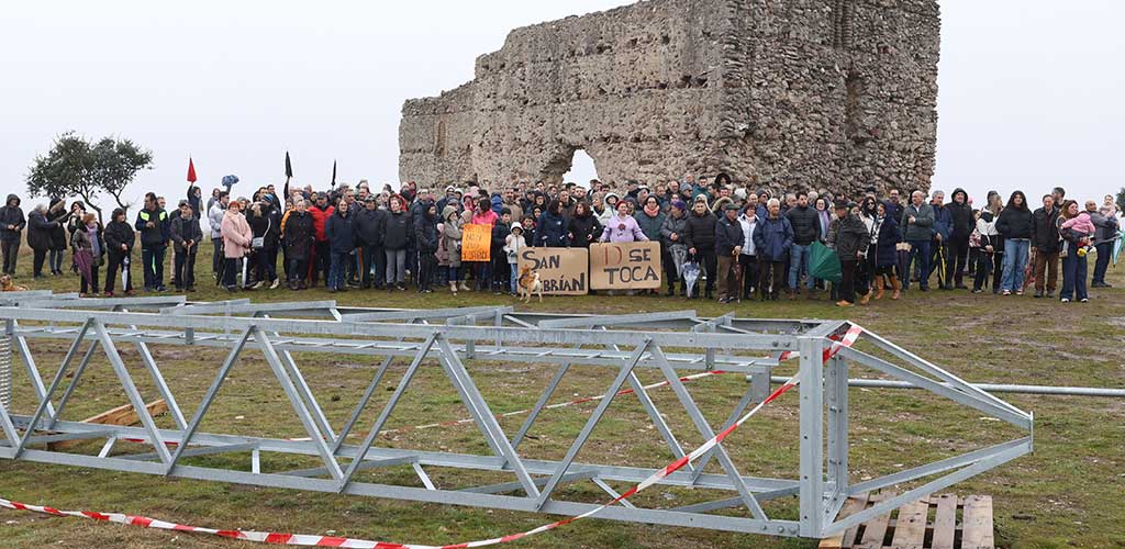 Más de 200 personas se concentraron ayer en el paraje de San Cebrián en Zarzuela del Pinar para mostrar su desacuerdo con la instalación de una torreta de videovigilancia junto a las ruinas de la ermita, promovida por la Junta de Castilla y León y la Fundación Patrimonio Natural.
