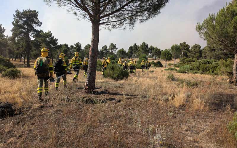 Entre los medios, hasta las 20.40 horas ha actuado la Brigada de Refuerzo en Incendios Forestales BRIF Lubia de Soria que ha centrado su trabajo en el flanco derecho atacando directamente el fuego con batefuegos y mochilas extintoras y rematando con herramientas manuales. Sus labores han sido de remate y vigilancia del fuego.