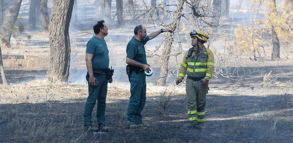 La superficie afectada, en gran parte pinar, supera ya las 40 hectáreas, aunque se encuentra actualmente en perimetración. Desde la Junta se detalla que se trata de pinar llano, con baja densidad de arbolado lo que “dificultará que suba a la copa de los pinos”, pero es una zona con pasto seco “que facilitará que avance más rápidamente”.