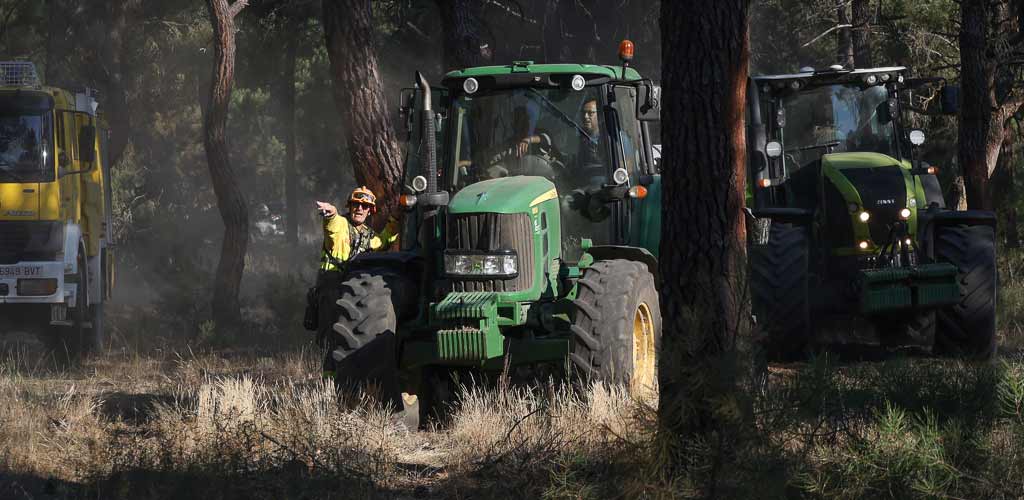 Hasta el lugar del suceso se han desplazado también vecinos de la zona con sus tractores y maquinaria dispuestos a colaborar en la extinción.