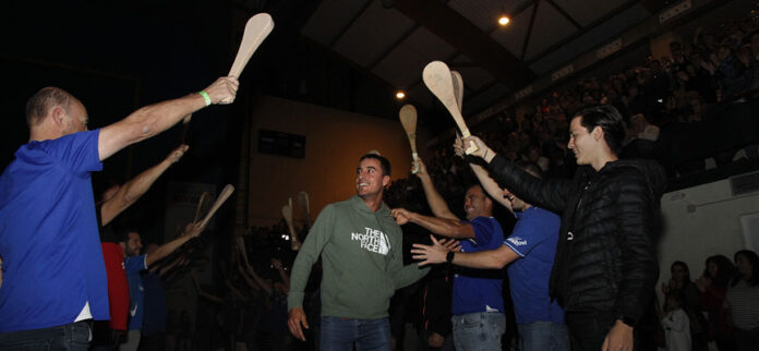 Una gran ovación para el pelotari valleladense acompañó el final de la proyección y dio paso a su intervención.