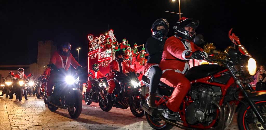 El Castillo de la villa ha sido el punto de partida del recorrido en el que Papá Noel ha viajado en una gran carroza que ha sorprendido a todos y que era la principal novedad de su visita de este año. De nuevo decenas de moteros con vestimentas y símbolos navideños han acompañado a este icono navideño por las calles del municipio. Desde San Gil hasta Santa Clara sin olvidarse del centro del municipio por donde ha ascendido hasta los Paseos de San Francisco donde ha recogido las carta de los niños de la villa y su comarca.