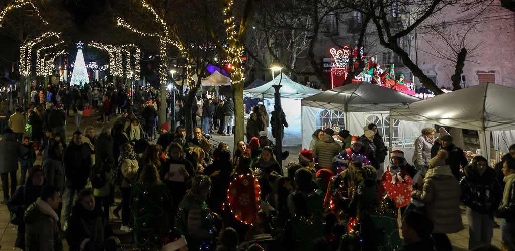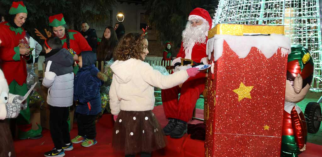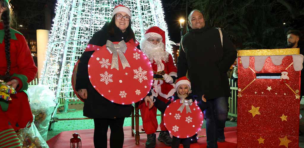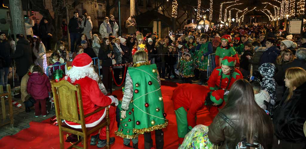 Ya en los paseos Papá Noel se ha situado junto al árbol para saludar a los niños y recoger sus cartas. Los paseos se han llenado de público y los niños, llenos de ilusión y nervios, han guardado cola esperando su turno para saludar al visitante del Polo Norte.