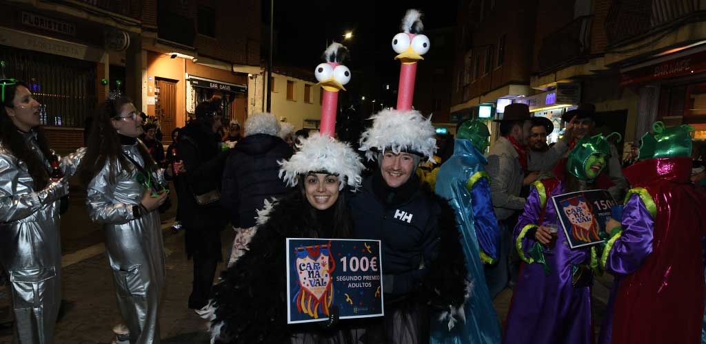 Hubo sorteos en los 20 establecimientos hosteleros que colaboraron con el Ayuntamiento y que marcaron el recorrido del tardeo musical y también hubo premios, sin necesidad de inscribirse, a los mejores disfraces que se vieron. Así el primero fue para los extraterrestres, seguidos por los avestruces y finalmente los calacas o esqueletos mexicanos.