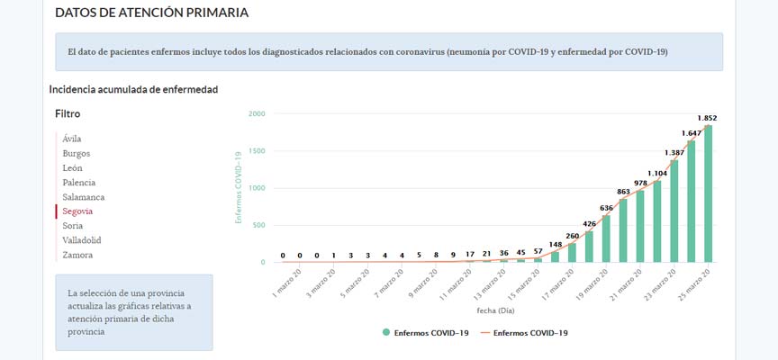 En cuanto a las residencia de mayores y centros de personas con discapacidad en la provincia de Segovia se han producido 28 fallecimientos, 56 casos positivos que se encuentran ingresados y 305 personas aisladas o en observación porque presentan síntomas, estaban ya aisladas por sus patologías o se encuentran en aislamiento preventivo por haber estado en contacto con casos confirmados, pero no presentan síntomas.
