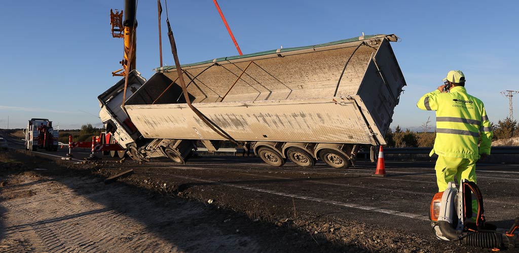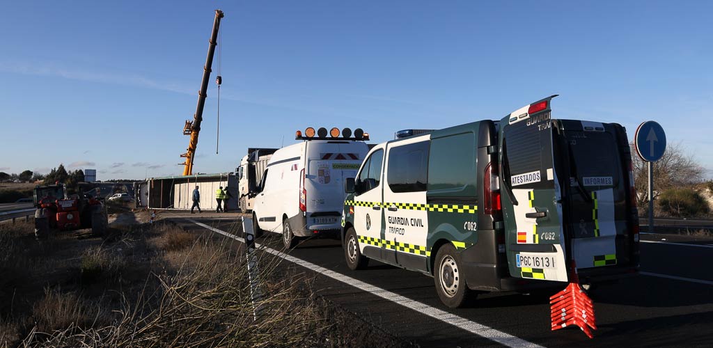 El suceso ha dejado intransitable el carril izquierdo de la autovía manteniéndose el tráfico por el otro carril con la ayuda de la Guardia Civil. El conductor del vehículo era natural de Quintanilla de Onésimo (Valladolid) al igual que la empresa propietaria del camión.
