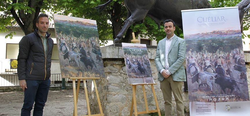 El alcalde de la villa, Carlos Fraile, ha sido el encargado de presentarlo junto al autor y con el monumento a los encierros como telón de fondo. “Después de dos años muy duros hoy tenemos la satisfacción de presentar lo que va a ser el cartel de las fiestas de este año 2022 en Cuéllar”, ha señalado el alcalde subrayando que es “una edición hace especial ilusión y felicidad a los vecinos de Cuéllar y los visitantes”.