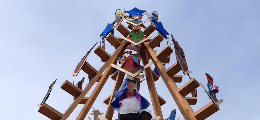 Sí han instalado en la plaza su tradicional árbol realizado en madera, un árbol que cada año tiene un diseño diferente. Si el año pasado eran ángeles y bolas de goma eva las que le decoraban, este año han sido las figuras del belén elaboradas con goma eva también. A los pies del árbol el misterio que recuerda a los vecinos la bonita manera de vivir la Navidad que tienen cada año y la esperanza de poder retomar la celebración de su belén viviente en 2022. Esta iniciativa ha hecho que la localidad mantenga la tradición del belén este año, aunque de un modo diferente.